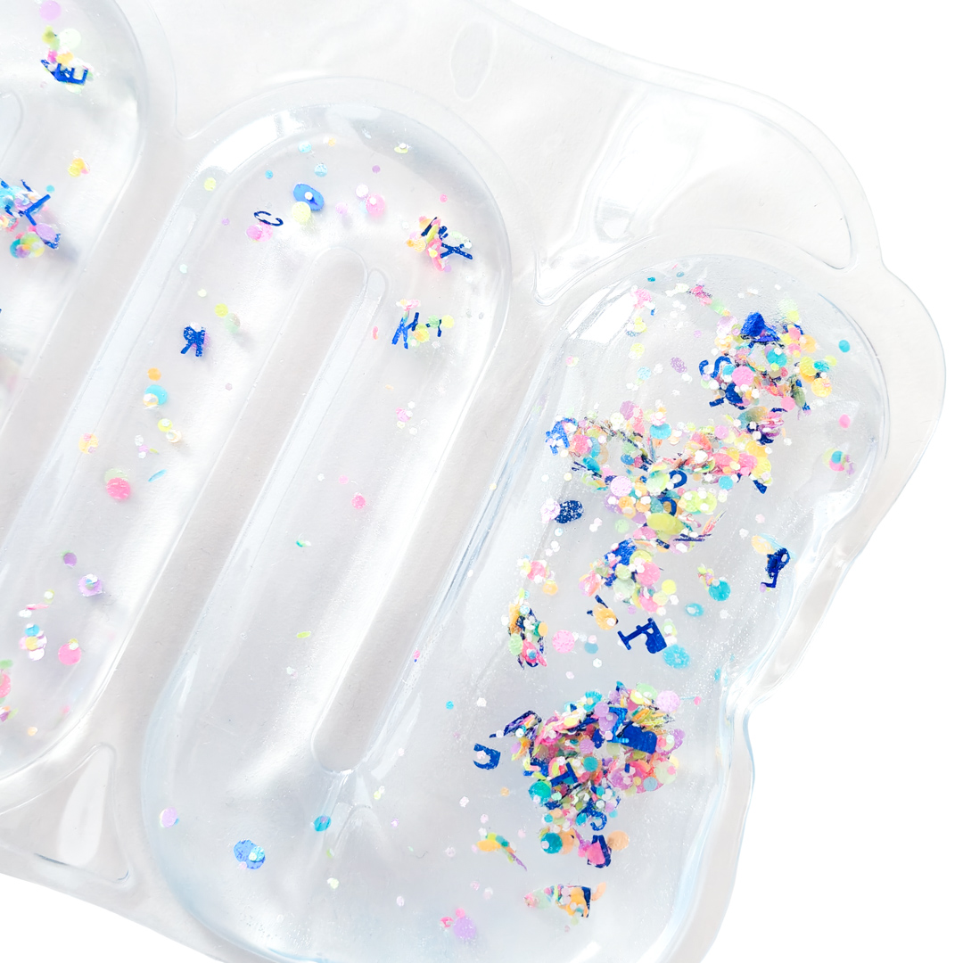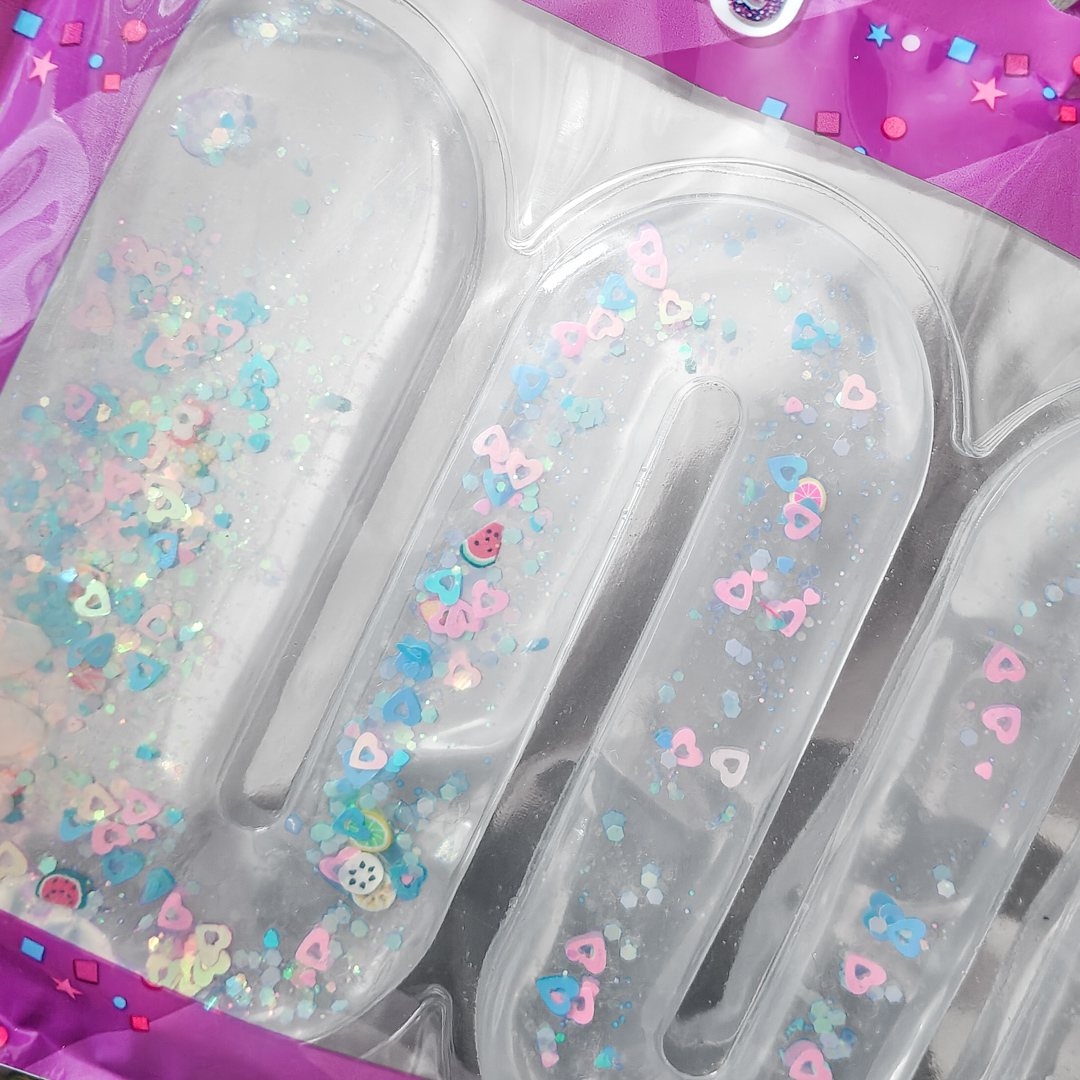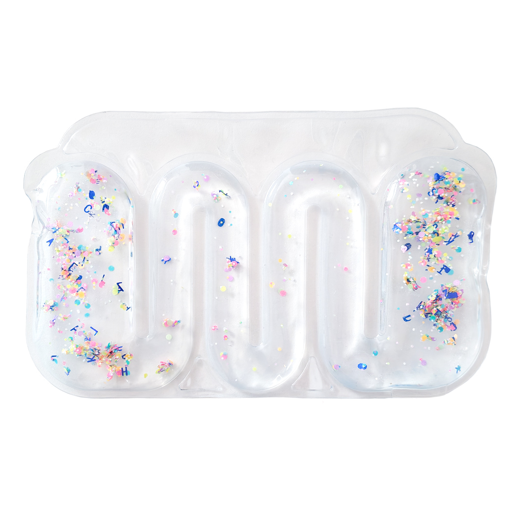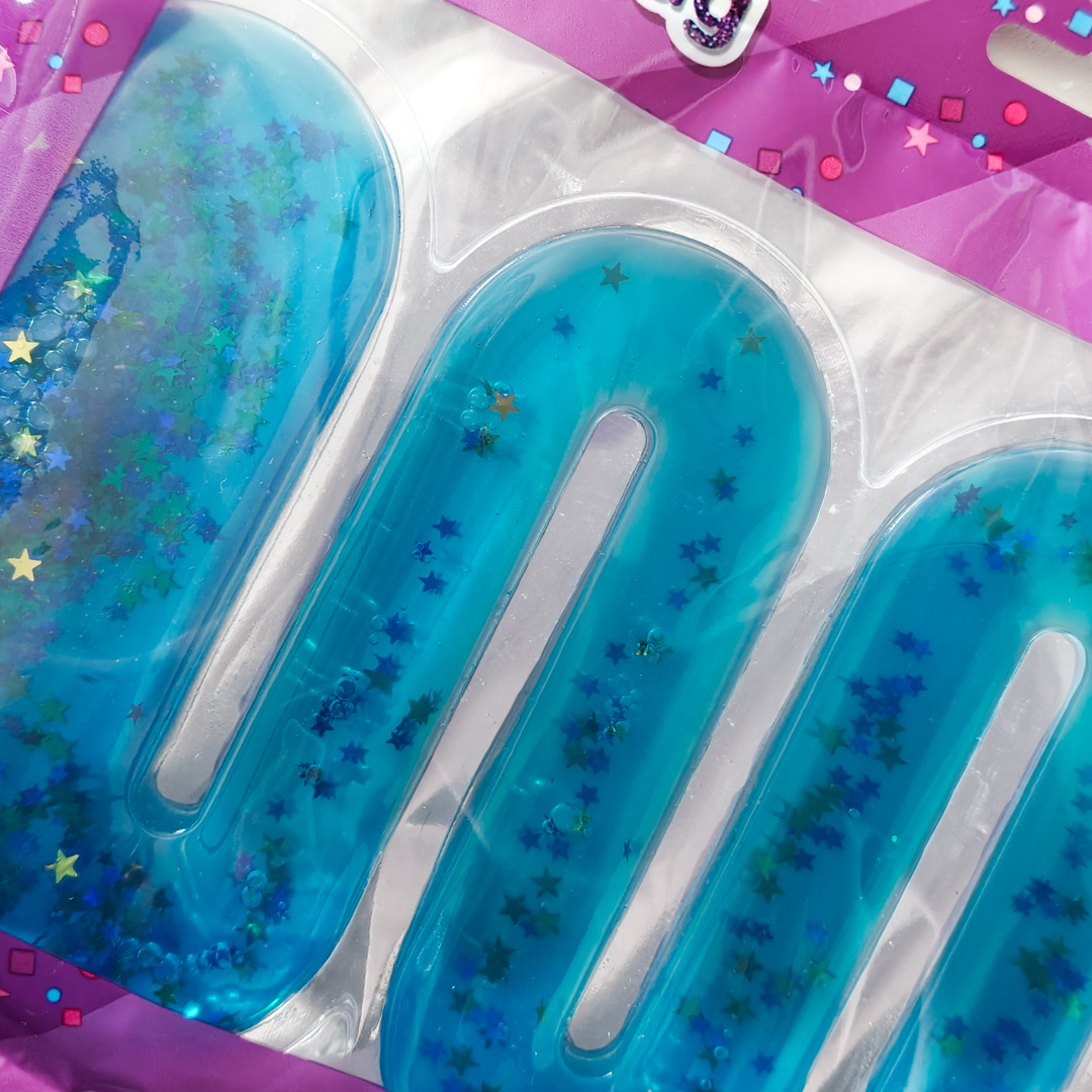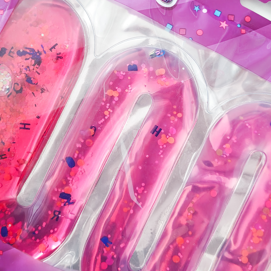Sisällä olevaa nestettä ja kiiltäviä hiukkasia, jotka liikkuvat puolelta toiselle puristettaessa. Kun sisältö liikkuu puolelta toiselle, se myös tuottaa pientä litisevää ääntä, joka tehostaa myös ääniaistia.