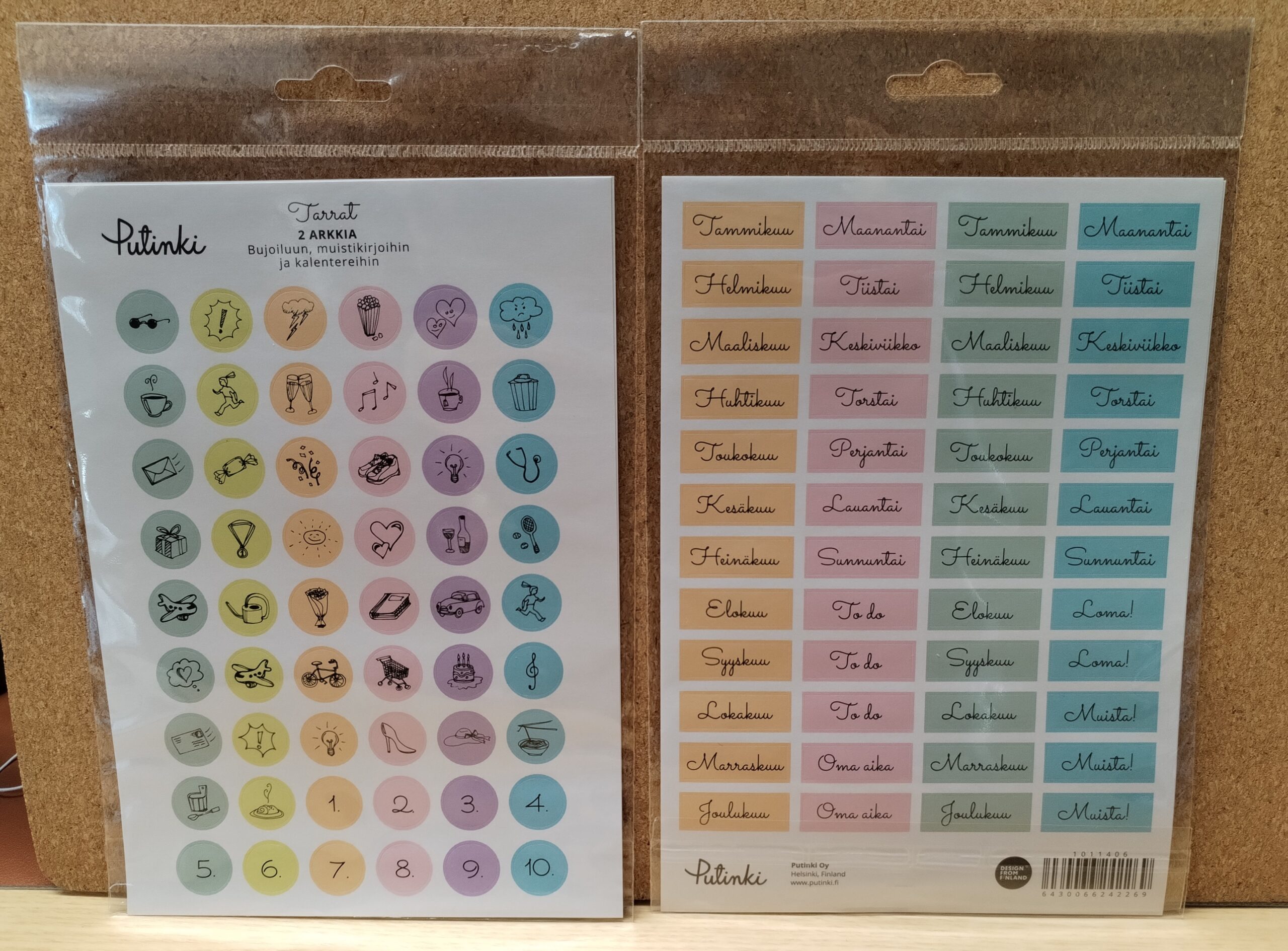 Kauniit tarrat bujoiluun, muistikirjoihin ja kalentereihin.